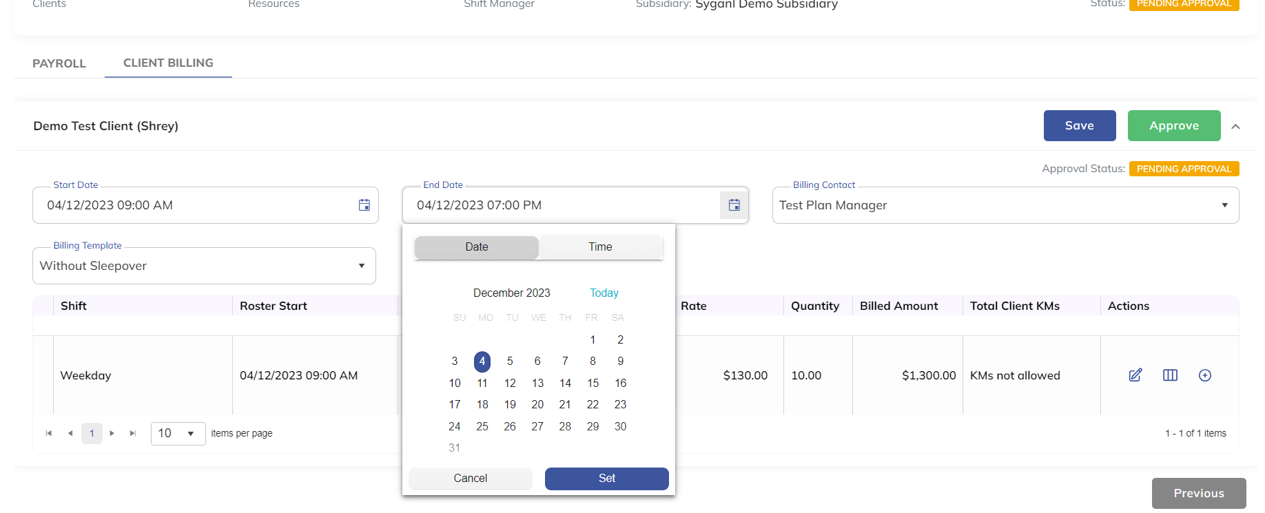 Where resource user clocks out without any amendments and the approver user amends on both the resource amendment & client amendment view. Upon the amendment, the resource billing and client billing amendment values will be taken to the report generation.