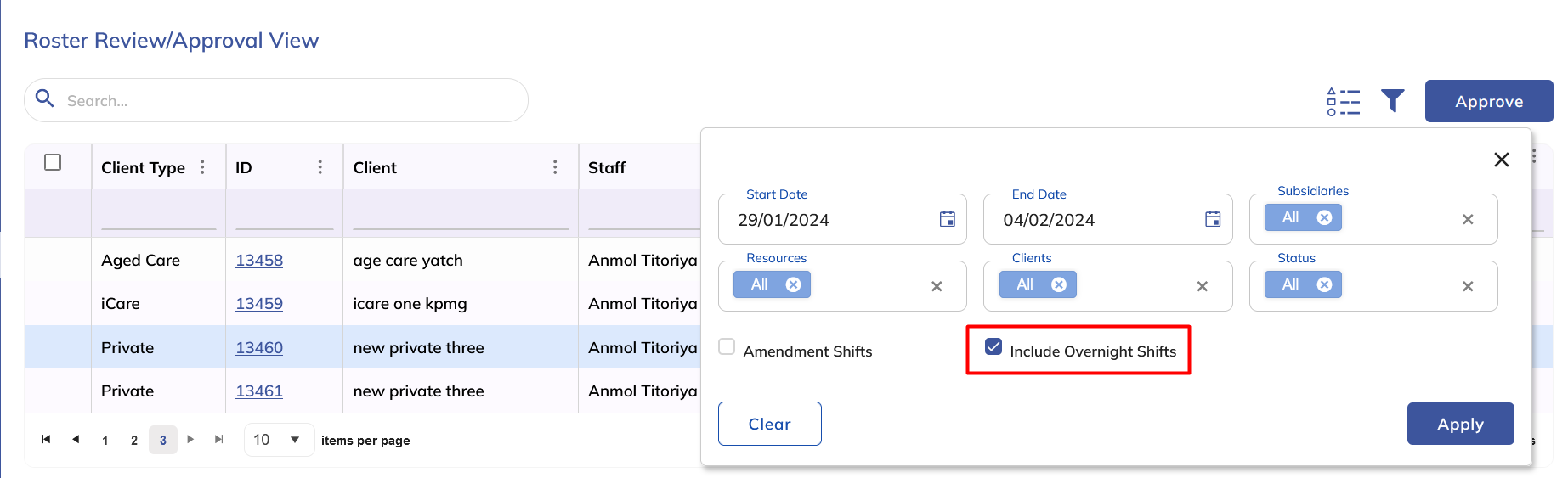 - Introducing a new feature in the 'Roster Review/Approval View' – the 'Include Overnight Shifts' checkbox.
