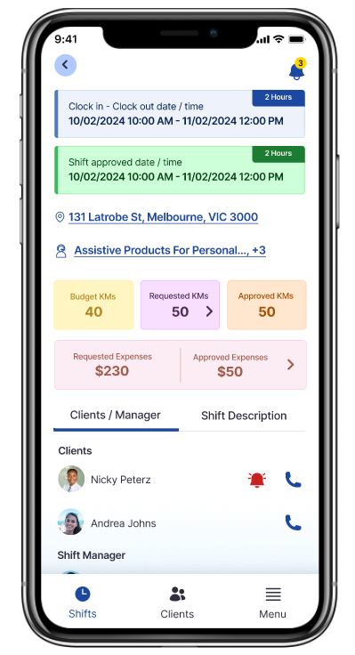 For shifts involving multiple clients, you can enter KM separately for each client. This step is optional and based on the client's request.