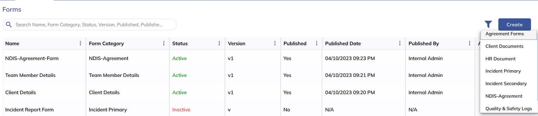 The Forms module in Sygnal allows authorised users to configure structured, role-based forms used across Clients, Staff, Incidents, Quality and Safety Logs, and Compliance workflows. Forms are configurable, version-controlled, and can be published with optional print templates.