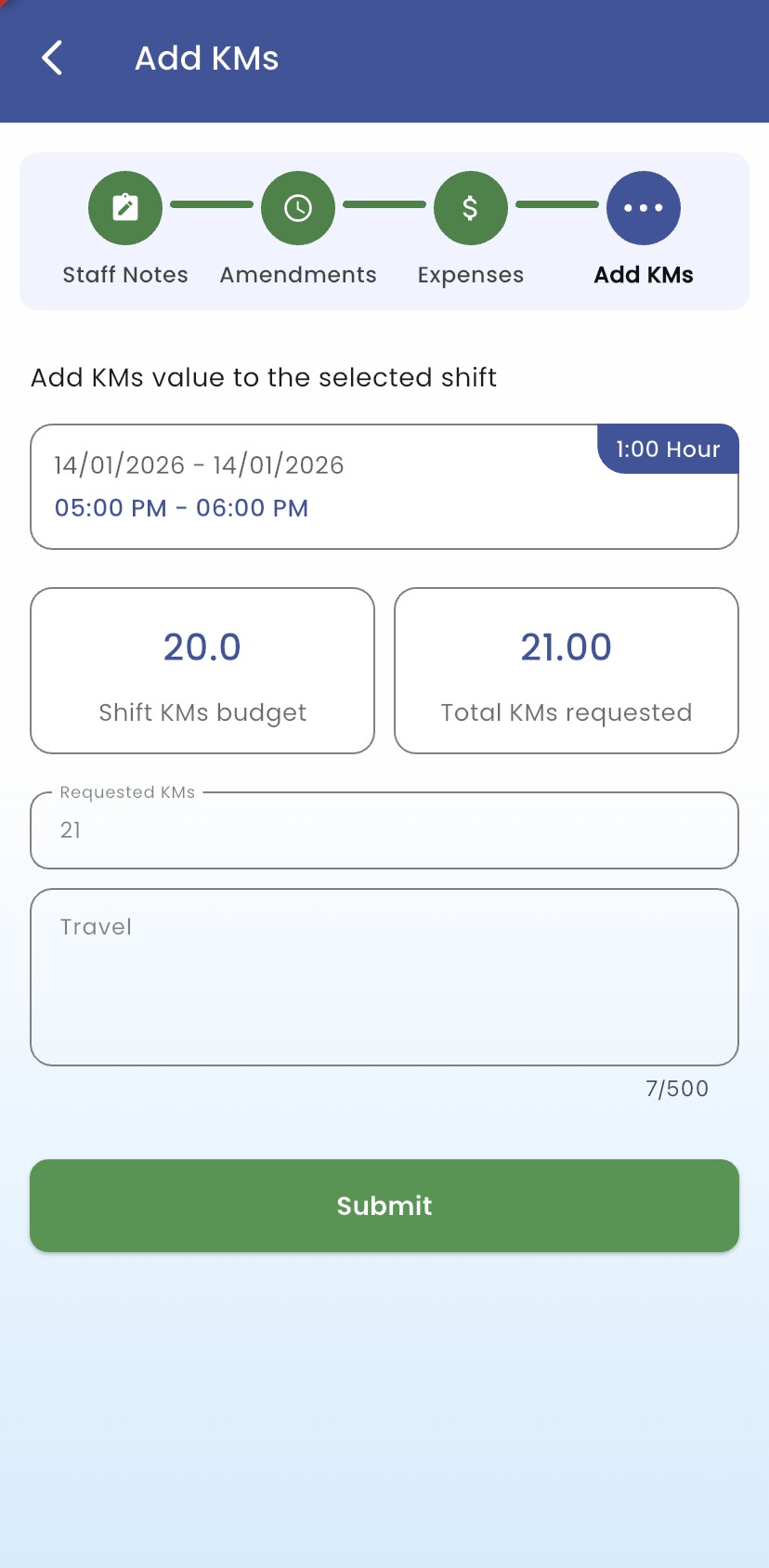 Or staff can request a KM Budget request for the claiming process from the mobile.